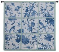 Floral Division Blue / Green Bird Wall Tapestry - Contemporary Collage With Birds, H41" x W44"
