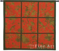 Floral Division Red / Gold / Black Bird Wall Tapestry - Contemporary Collage With Birds, H41" x W44"