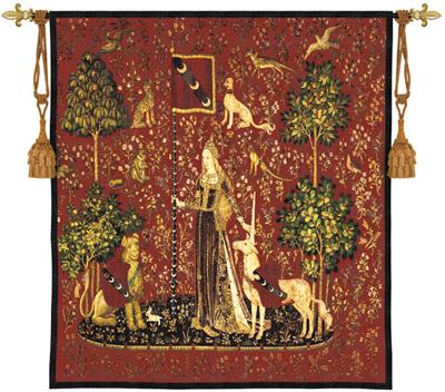 ![]() Taste I French Tapestry Wall Hanging H54" x W78", cushion also available in size: H26" x W34", H38" x W54" More info... $639.99 | ![]() click here to enlarge Le Gout / The Taste Lady And The Unicorn Tapestry Finished with rod sleeve Size: 35" x 45" also available in size: 25" x 32" More info... $354.99 |