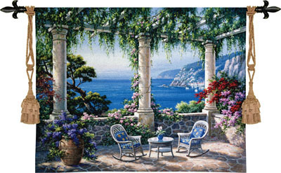 ![]() click here to enlarge Capri Terrace Tapestry Mediterranean Seascape Picture Size: 36" x 48" also available in sizes 42" x 55", 46" x 61" More info... $379.99 | ![]() click here to enlarge Seaview Hideaway Tapestry Mediterranean Decor Picture Size: 53" x 53" also available in size 31" x 31" More info... $180.00 |